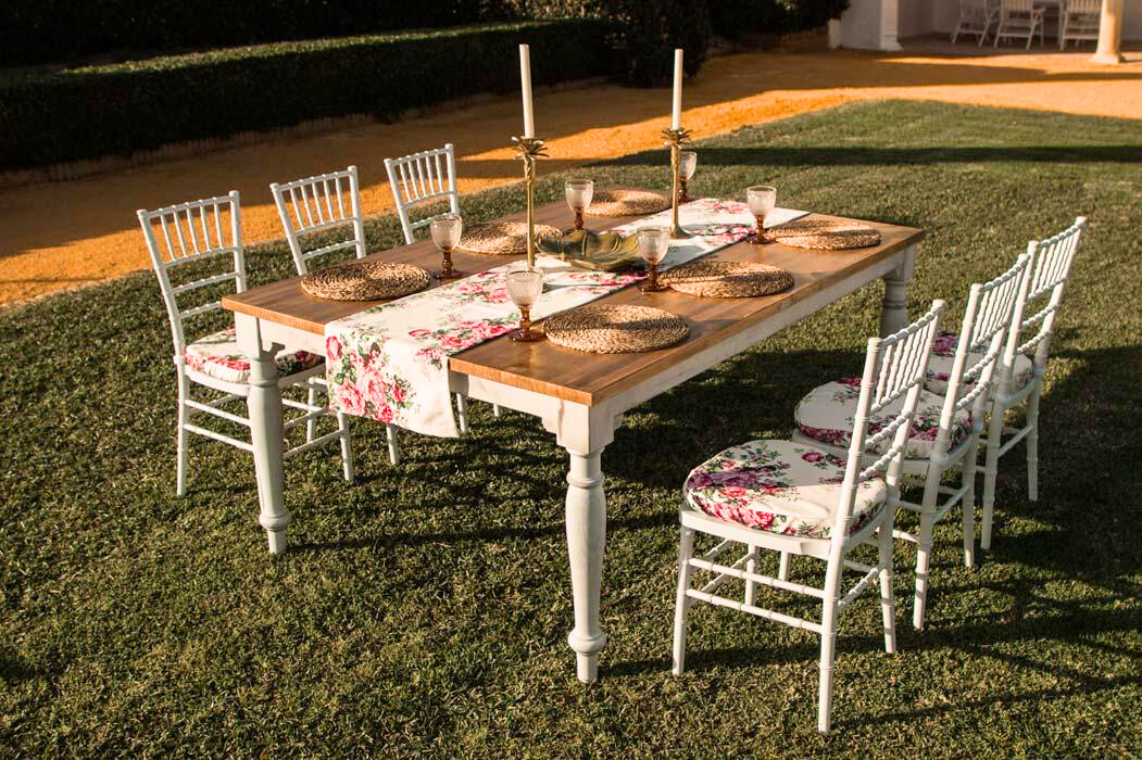 Disponemos de una amplia variedad de sillas como las sillas de Palilleria Tiffany en blancas y en color Oro, sillas Bambu, sillas plegables Americanas blancas, sillas ceremonia, sillas conferencia o pala, mesas redondas de 1.80 m. para hasta 12 comensales, mesas rectangulares de 1.83 m., mesas rectangulares de 1.20 m., mesas altas y bajas para cocktail, tronas, mostradores de madera de pino o barra madera , blanca envejecida, ademas de todo tipo de mobiliario iluminado con led como barras, mesas altas y bajas, taburetes, lamparas, etc… Todo nuestro mobiliario está hecho con materiales de alta calidad. Personalice estos artículos añadiendo a su presupuesto fundas para sillas y mesas altas, fajines y lazos, manteles, cubrementeles, caminos, etc… No olvide visitar nuestra sección de mantelerias para conseguir las mejores ofertas.